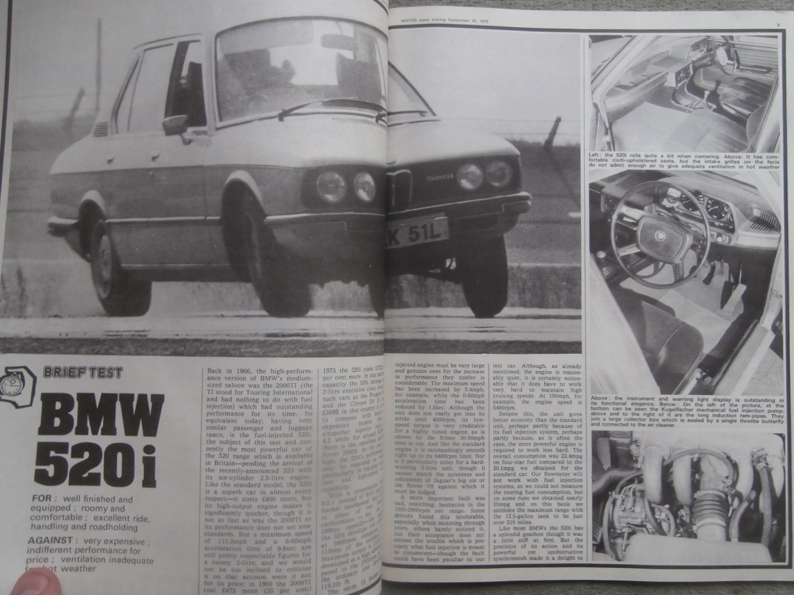 Motor 15.9.1973 Renault 12TS,BMW 520i E12 Roadtest,Jaguar XJ12 or XJ6 Coupé
