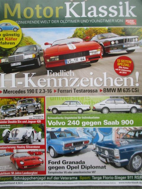 Motor Klassik 12/2013,BMW M635CSI E24 vs. Ferrari Testarossa vs. Mercedes 190E 2.3-16 mit Kaufberatung, Saab 900i und Volvo 240 mit Kafberatung,Ford Granada Ghia und Opel Diplomat V8,50 Jahre Lamborghini 400 GT, Miura und Countach, Daimler Double Six und Jaguar 420G,Range Rover 4.6HSE,gebrauchtes Heft