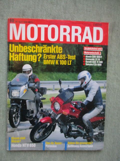 Motorrad 10/1988 Test und Technik: Aprilia Touareg 600 Wind, Harley-Davidson Springer Softail-Technik,Fecht-Trike mit 110 PS,Gimbel-Suzuki GSX-R 1100,Suzuki GS 450E,Honda NTV 650 Revera Fahrbericht,VGT: Honda CBR 1000 F und Kawasaki ZX-10 und Yamaha FZR 1000 Genesis und Suzuki GSX-R 1100,gebrauchtes Heft