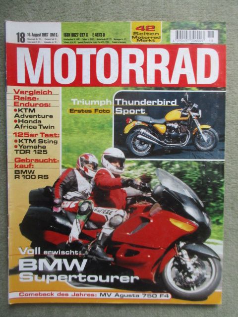 Motorrad 18/1997, test & Technik: Kainzinger 1680V Fource, MV Agusta 750 F4,Honda Africa Twin und KTM Adventure,Fahrbericht: Honda Dream 50, Technik:Leistung und Abgaswerte mit und ohne Kat bei Honda CBR 1100X und XTR 1000,Fahrbericht: Yamaha XVS 650 Sidewinter, KTM Sting vs. Yamaha TDR,Gebrauchtkauf: BMW R 100 RS,gebrauchtes Heft