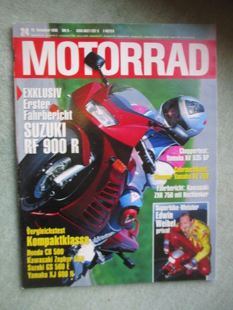 Motorrad 24/1993, Test und Technik Fahrbericht Suzuki RF 900R,Kurztest Yamaha XV 535 SP,Kawasaki KLX 250R, Gebrauchtkauf Yamaha XV 750 Special (SE),VGT: Honda CB 500 vs. Kawsaki Zephyr 550 und Suzuki GS 500E und Yamaha XJ 600 N , gebrauchtes Heft