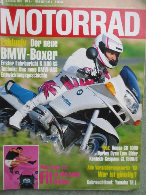 Motorrad 4/1993,Test Honda CB1000,Kentech-Gespann,Harley-Davidson Dyna Low Rider,Fahrbericht OCS 1000,Wynne-Ducati 888 SSS,Gebrauchtkauf Yamaha TR1,Vergleichstest:Honda CR250 und Hsuqvarna CR250 und Kawasaki KX250 und KTM 250SX und Maico MC250 und Suzuki RM250 und Yamaha YZ250,gebrauchtes Heft.