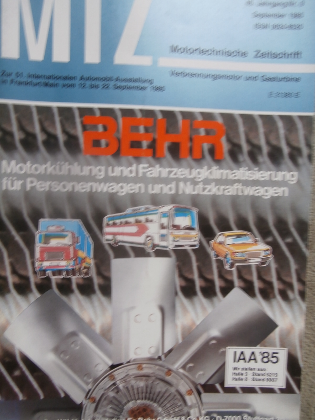Motortechnische Zeitschrift 9/1985 BMW 2,5l Liter M20 Motor,Porsche Motor 928S,VW Golf & Polo 1,3l Motoren,Saab 9000 turbo 16,Lancia Y10 Fire Motor,gebrauchtes Heft.