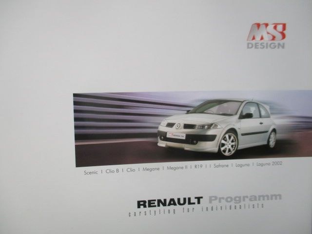 MS Design Renault Programm, Modelle: Scenic,Clio B,Clio,Megane und II, R19,Safrane,Laguna und 2002,27 Seiten stark,Version AT