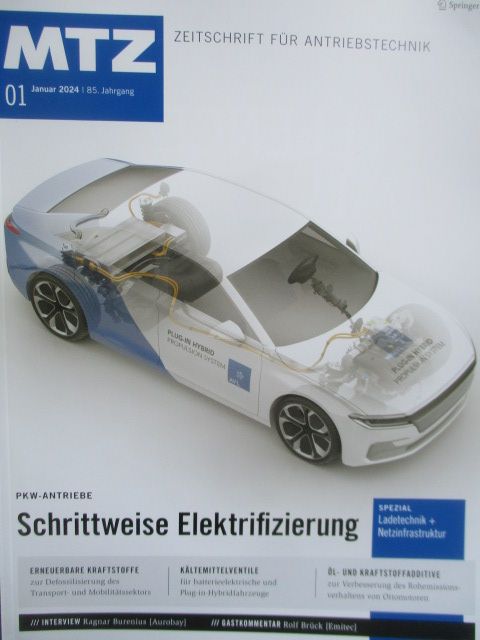 MTZ 1/2024 Schrittweise Elektrifizierung,Hybridisierung der modularen Sechszylindermotoren von Mercedes-Benz,erneuerbare Kraftstoffe, elektronische Kältemittelventile für Elektrofahrzeuge Öl- und Kraftstoffadditive zur Verbesserung des Rohemissionsverhaltens von Ottomotoren,neuwertiges Heft