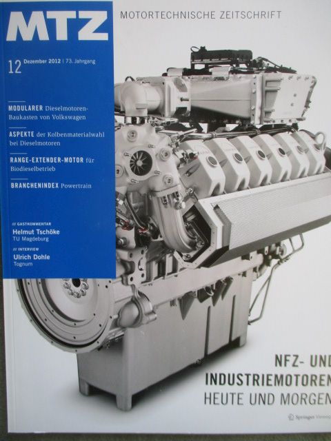 MTZ 12/2012, Range-extender Motor für Biodieselbetrieb, 10.7l Nfz Motor für Daimler für Euvo VI und Tier 4, der modulare Dieselmotoren Baukasten von VW, gebrauchtes Heft