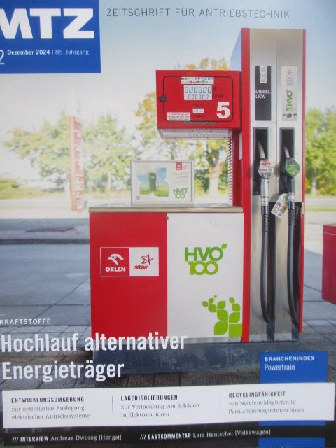 MTZ 12/2024 Hochlauf alternativer Energieträger, Potenzial von HVO in Dieselmotoren, Forschung Elektromotoren, neuwertiges Heft