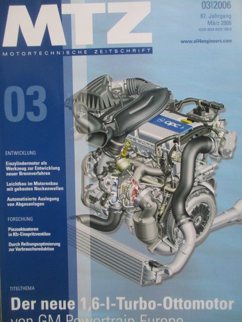 MTZ 3/2006,der neue 1.6l Turbo-Ottomotor von GM Powertrain Europe,durch Reibunsoptimierung zur Verbrauchsreduktion, gebrauchtes Heft