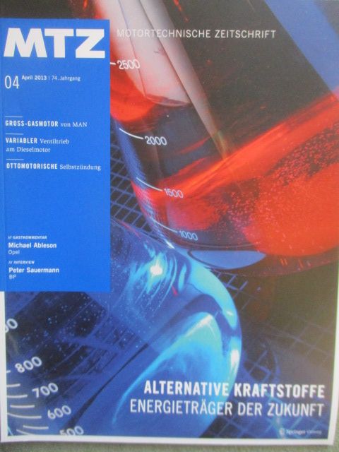 MTZ 4/2013 Alternative Krafstoffe Energieträger der Zukunft,Partikelfilter Regeneration bei Biokratfstoffen,das Brennverfahren des Gasmotrs 20V35/44G von MAN,neue 3-Zylinder Erdgasmotor von VW,neuwertiges Heft.