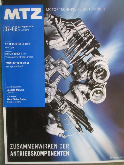 MTZ 7-8/2012 Zusammenwirken der Antriebskomponenten,die Boxermotoren im neuen Porsche 911 Carrera, Opel 2.0 Biturbo-Dieselmotor mit Zweistufen-Ladeluftkühlung,der elektrische Antriebe des BMW AcitveE, Elektrifizierung eines Downsizing-Ottomotors mit Aufladung,neuwertiges Heft.