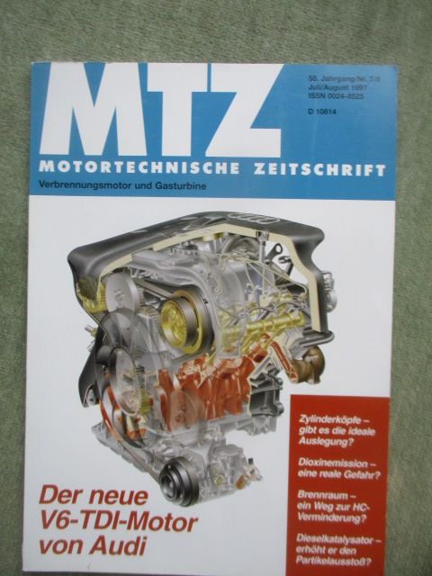 MTZ Juli+August 1997, der neue V6-TDI Motor von Audi, Vierzylinder Turbo Motor für den A3,Rußpartikel-Filtersystem für MTU-Motoren, Einfluß der Brennraumform au HC-Emission und den Verbrennungsablauf,Einfluß der Abgasnachbehandlung auf die Eigenschaften der Partikel im Abgas von Fahrzeug-Dieselmotoren,gebrauchtes Heft