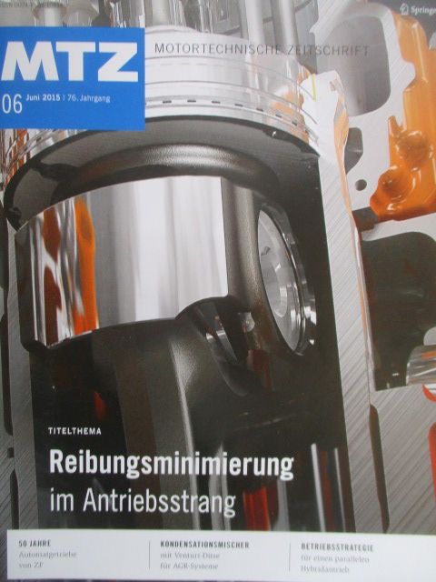 MTZ Juni 2015 Reibungsminimiierung im Antriebsstrang, 50 Jahre Automatikgetriebe von ZF,Emissionen Venturi AGR Kondesationsmischer, synthetische Kraftstoffe,neuwertiges Heft