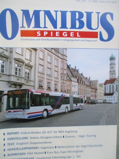 Omnibus Spiegel März 2011, Report: Irisbus-Heuliez GX 427 für RBA Augsburg, Solaris Urbino 18 mit Spezialdesign, Scania/Higer Touring HD12.1, VGT:Setra S415 H und Temsa Safari RD13 und Van Hool T 915 Atlon,Vogel Sitze, Faltenbalgzüge von Gaubschat 1.Teil,schönes Heft