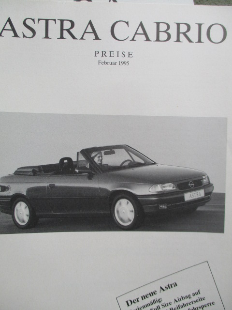 Opel Astra F Cabrio 52kw 85kw Preisliste Februar 1995,4 Seiten stark.
