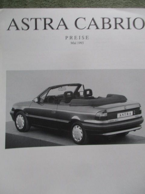 Opel Astra F Cabrio Preisliste Mai 1993 85kw/115ps,4 Seiter, Hdl.Stempel hinten drauf.