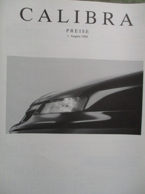 Opel Calibra Preisliste 85kw 100kw 125kw +turbo 150kw 1.August 1994