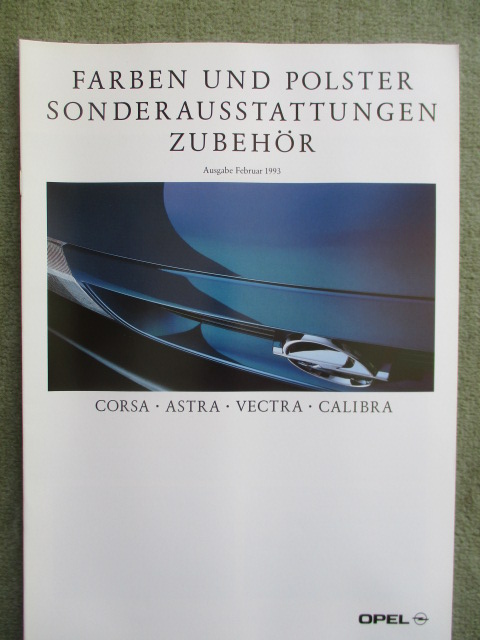 Opel Corsa B Astra F Vectra B Calibra Farben und Polster Sonderausstattungen Zubehör 2/1993,22 Seiten stark.