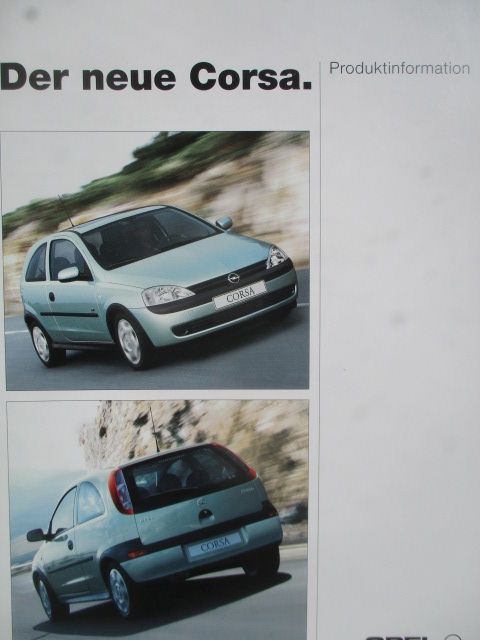Opel Corsa C Produktionformation August 2000 mit Infotainment, Betriebskosten,Technische Daten, Wettbewerbsvergleich,78 Seiten stark, guter Zustand,nur für den Verkäufer gedacht