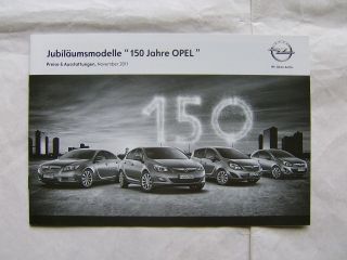 Opel Corsa Meriva Astra Insignia 150 Jahre Jubiläumsmodelle, November 2011 NEU.
