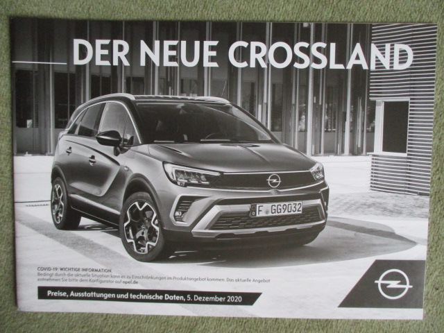Opel Crossland Preise,Ausstattungen und technische Daten 5.12.2020, Edition, GS line,Ultimate, Business und Elegance Edition,27 Seiten stark.