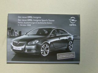 Opel Insigina +Sports Tourer Preisliste Oktober 2008 neu.