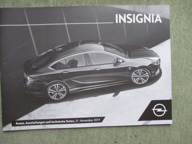 Opel Insignia +Sportstourer Preisliste 103kw 121kw 81kw 100kw 125kw Diesel +154kw 21.11.2019,47 Seiten stark,Riss Rückseite.