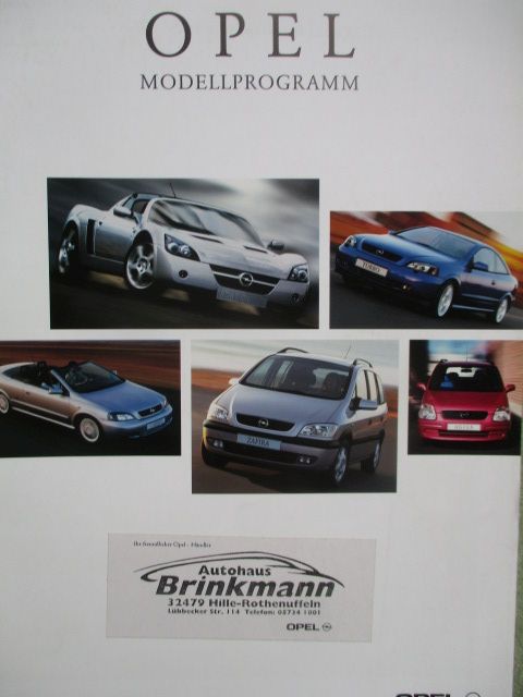 Opel Modellprogramm August 2001 Agila Corsa C,Astra,+Coupe +Cabrio,Zafira,Vectra,Speedster,Omega,Frontera