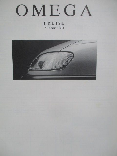 Opel Omega B 2/1994,Modelle: CD,MV6,Caravan +CD und MV6,6 Seiten stark, Notiz mit Bleistift,Angebot.