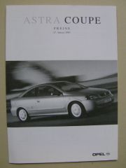 Opel Preisliste Astra Coupe Januar 2001 NEU