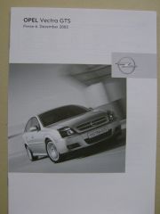 Opel Preisliste Vectra GTS Dezember 2002 NEU, selten.