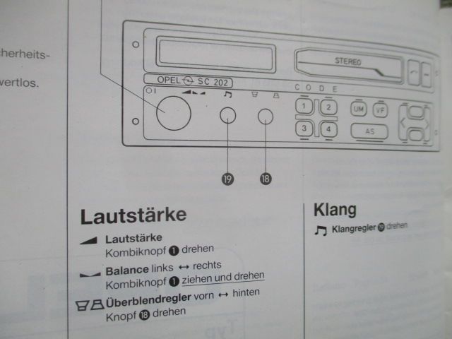 Opel Radio SC 202 Juli 1990,62 Seiten stark, gebrauchter Zustand