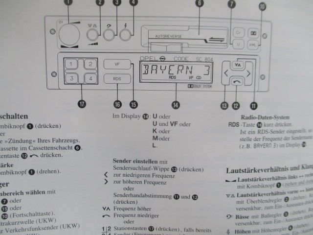 Opel Radio SC804,Radio,Cassette,abnhembares Bedienteil, mehrsprachig, Notiz,gelocht