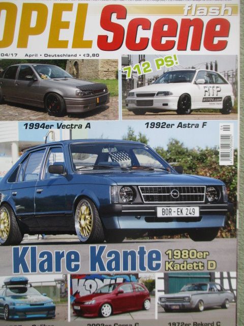 Opel Scene flash 4/2017,Astra F CC,Ascona C, Manta B CC,Kadett D aus 1980, Corsa C, Rekord C Sprint, Calibra 2.0i, 59er Kapitän P Luxus, Vectra A 2.0i,77iger Kadett C, mit poster, guter Zustand.