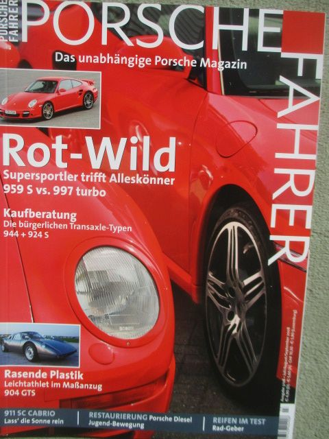 Porsche Fahrer 3/2008, 911 SC Cabrio,959 S trifft 997 turbo, 904 GTS, Restaurierung Porsche Diesel, Kaufberatung 944 und 924S, 914-6 Frua,schönes Heft.