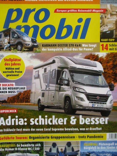 pro mobil 12/2020,Dauertest:Hymer B-Klasse MC I 580,Karmann Dexter 570 4x4,neue Fiat Ducato,Adria Coral 670 DL,Vanlife Manufaktur Escape Concept,VW Caddy California,Kauf Tipp: Adria Compact,Kansu Van TI Plus,Laika Kosmo Compact,Bürsnter Nexxo Van,Dethleffs Globebus T,LMC Cruiser V,Rapdio C, Flleurette Migrateur,Hobby Optima V,Sunlight Van, Weinsberg Cara-Comapct,Hymer Exsis-T,La Strada Nova,Wingamm Oasi,neuwertiges Heft.