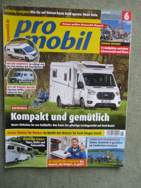 pro mobil 6/2023 Test & Technik Dethleffs Globebus Go T45, Rpido C86i und Abt XNH Premiere, Concorde Centurion 1060GI, Bürstner Delfin 621,Notin Bilbao BCL, Dauertest Malibu Van 640LE,gebrauchtes Heft