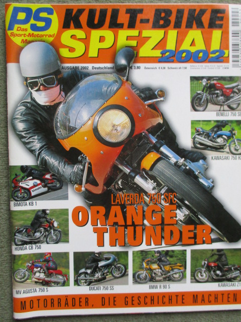 PS Kult-Bike Spezial 2002 Motorräder die Geschichte machten,Benelli 750 Sei,Bimota KB1,BMW R90S und R1100S,Dähne BMW R90S,Ducati 750SS,Honda CB750 K1,Honda CBX Super Sport, Kawasaki 350 S1 und 750 H2, 900 Z1,Laverda 750SFC, Moto Guzzi V7 Sport, MV Agusta 750SS,Suzuki GT750,Triumph T 160 Trident, Ymaha RD500 und XS650,gebrauchtes Sonderheft.