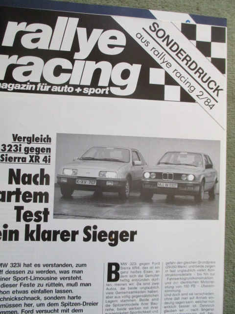 rallye racing 2/1984 Vergleich BMW 323i E30 vs. Ford Sierra XR4i Sonderdruck