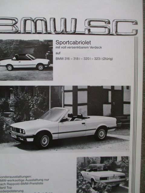 Rappold BMW 316 318i 320i 323i E30 Sportcabriolet ,1 Seiter, selten.