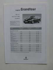 Renault Laguna Grandtour Preisliste 1.Januar 1998 NEU, Hdl.Stempel hinten drauf.
