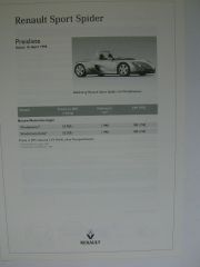 Renault Sport Spider Preisliste 10.April 1996 Rarität NEU , sehr selten.