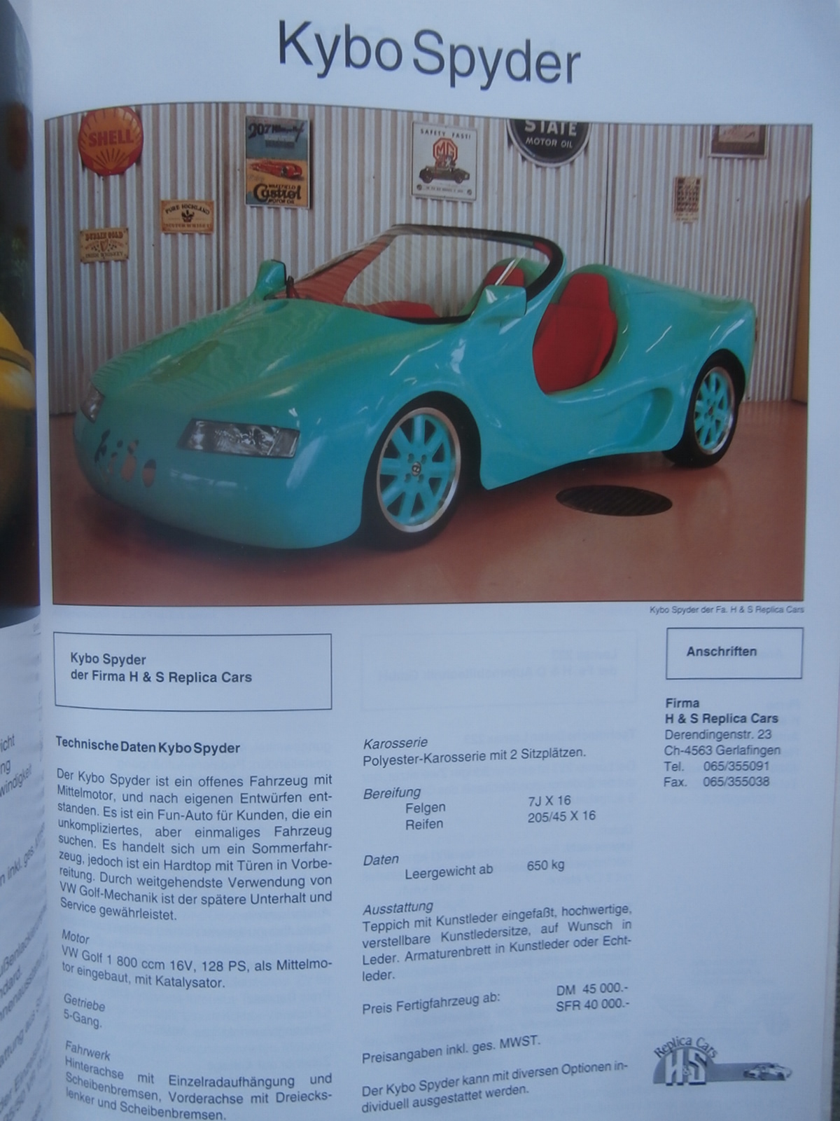 Replica & Cabrio Katalog 1992/93 AC Cobra +Lota T70,Apal Fiero,Beauford Tourer,Bonito,Sonic,Carlton ZX 2+2,Excalibur,Ginetta G33,Mirage,Seventy Seven,Strohm V6 Turbo, Verona Cabriolet,Westfield,Albar Buggy, Saier A1 Buggy,256 Seiten stark,gebrauchter Zustand.
