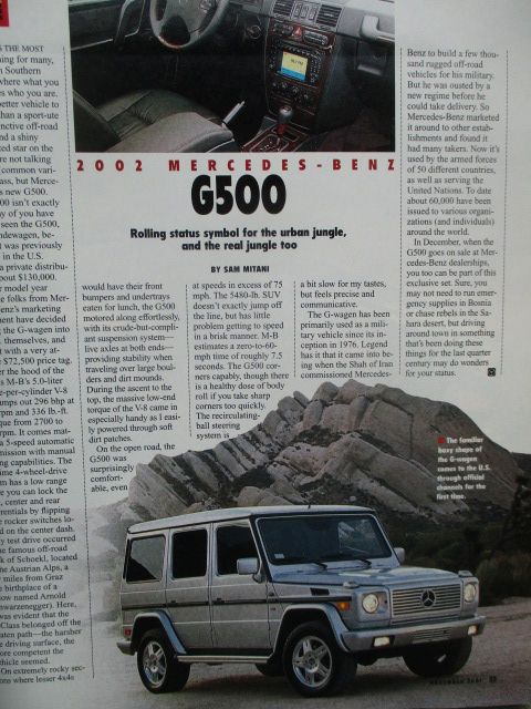 Road & Track 11/2001 Acura RSX Type S,Camaro Z28,Dodge Neon R/T,Mustang GT,MP3,Eclipse GT,Altima 3.5SE,Impreza WRX,Toyota Celica GT-S,VW GTI GLX, S55 AMG W220,BMW 740i ,G500,Elantra GT,S60 AWD,Honda CR-V,Murcielago,Lexus IS300L,Porsche 911 (996),englisches Heft aus USA.