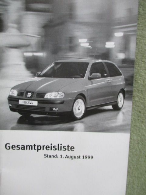 Seat Preisliste 8/1999 Modelle:Arosa,Ibiza,Cordoba +Vario, Toledo,Alhambra und Inca,26 Seiten stark.