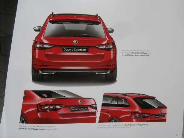 Skoda Superb Sportline Typ 3V Dezember 2016 NEU,Limousine,Combi,Technische Daten/Preisliste, 27 Seiten starker Hochglanzprospekt,Hdl.Stempel hinten drauf.