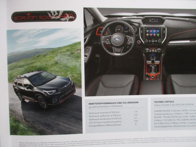 Subaru Forester Sonderediton Sport 40 Katalog +Preisliste August 2020,4 Seiten stark.