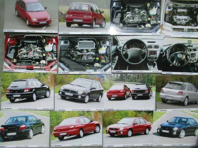 Subaru Modelljahr 2002 Pressemappe mit: Justy, Impreza, Impreza WRX, Legacy, Outback,Forester, Text,velen Fotos,gebrauchter Zustand.