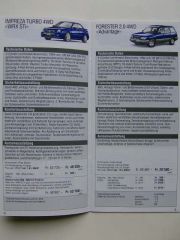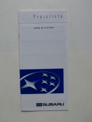 Subaru Preisliste 11.9.2001 Justy Impreza Forester Legacy Outback Schweiz, 23 Seiten stark, sehr selten.