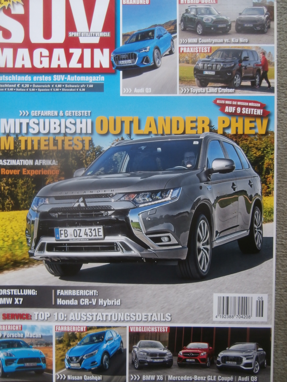 SUV Magazin 6/2018 Hyundai Nexo,C5 Aircross,Outlander PHEV,X7,Q3,Nissan Quashqai 1.3DIG-T,Mcan,CR-V Hybrid,VW T6 Multivan PanAmericana,Praxistest Toyota Land Curiser 2.8D-4d,Vergleich: Kia Niro Plug-in-Hybrid vs. Mini Cooper S E Countryman All4,Vergleich: Audi Q8 50TDI vs. BMW X6 M50d und GLE Coupé 350d,gebrauchtes Heft.