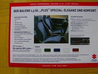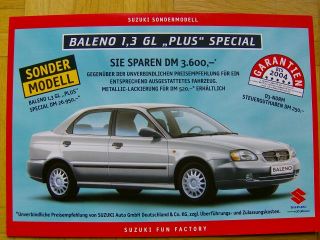 Suzuki Baleno 1,3 GL Plus Special Prospekt 4/1999 NEU, 2seiter, selten.